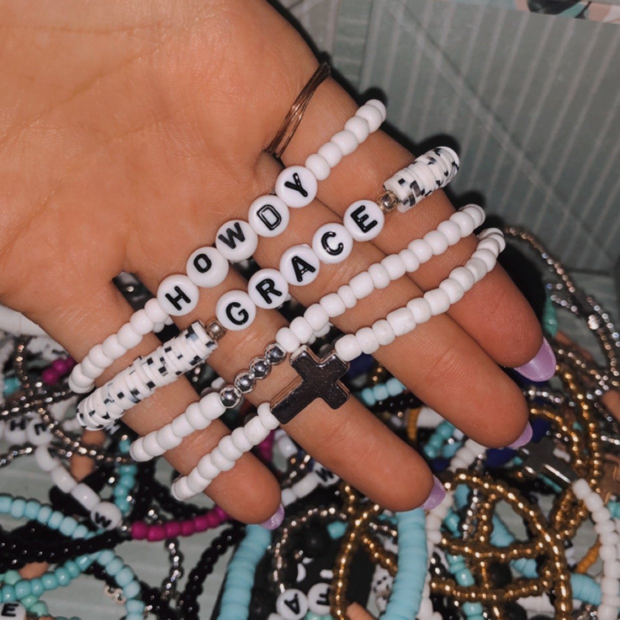 4 bracelet that all together in a stack